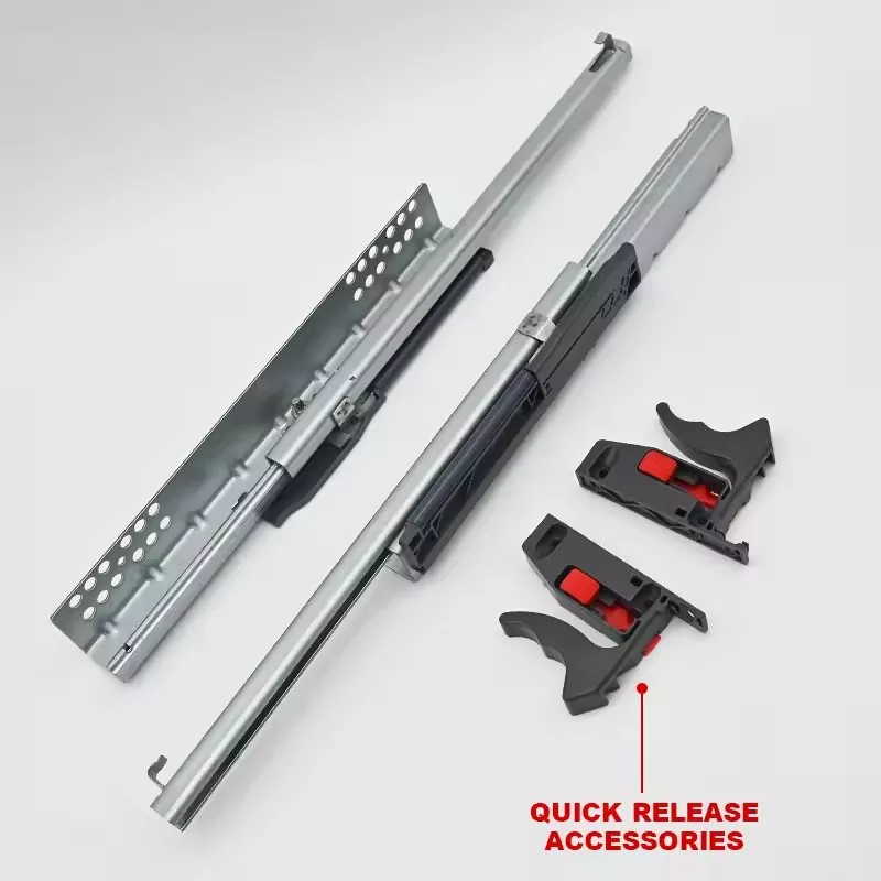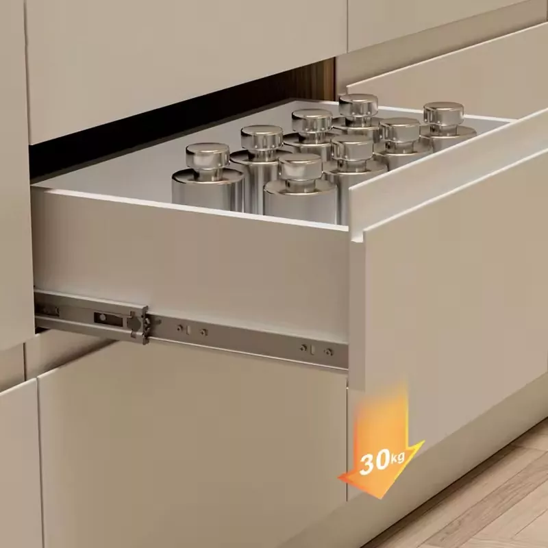 Pierwszą rzeczą do rozważenia jest wybór materiału. Istnieją dwa typowe rodzaje szuflad: łożysko kulowe i koło pasowe. Rodzaje łożysk kulowych przesuwają się płynniej, a typy koła pasowego są tańsze. Kuchnie i łazienki to często wilgotne środowiska, a szyny zjeżdżalni z niską jakością są podatne na rdzę. Zwiększa to tarcie, powodując poważną blokadę podczas wyciągania szuflad lub drzwi gabinetu. Z czasem może to spowodować szkody i znacznie zmniejszyć żywotność mebli. Dlatego miękkie szkiełka szufladowe wymagają pewnej odporności na korozję, aby dostosować się do takich wilgotnych środowisk. Zwykle stosuje się stopę aluminium, stal ocynkowaną lub stal nierdzewna. HY pozwala wszystkie swoje materiały znanych producentów krajowych, zapewniając stabilną jakość i wydajność.