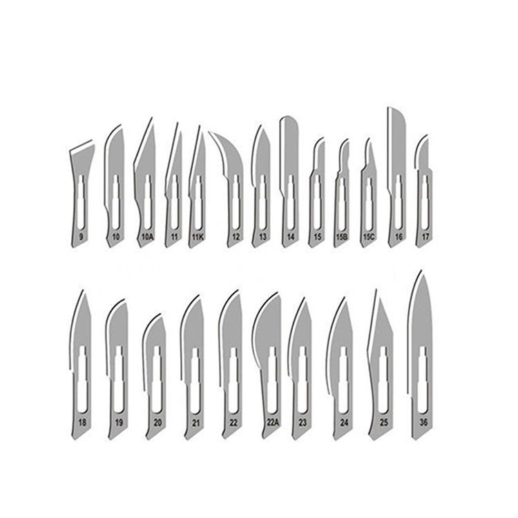 Obecnie powszechnie używane ostrza chirurgiczne są podzielone na nr 10, 11, 12, 15, 20, 21, 22, 23 i 24.